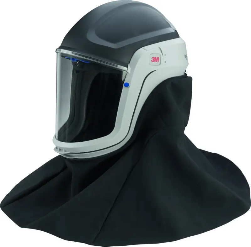 Luchtkap met veiligheidshelm in PC/Polyester met opklapbaar vizier en nek- en halsbescherming in Cordura. Transparant vizier in polycarbonaat zorgt voor een breed gezichtsveld en veel licht in de kap wat lichamelijke belasting tot een minimum herleidt. Luchtkanaal leidt naar het vizier om beslaan van het vizier te vermijden. Te combineren met motorunit Jupiter, Versaflo of op persluchtnet m.b.v. flowstream regelaar met luchtslang. Voor zwaardere toepassingen, adem-, gelaaats- en hoofdbescherming in één. Gewicht: 845 gr. NPF: 500 met Versaflo of Jupiter, 200 met perslucht.