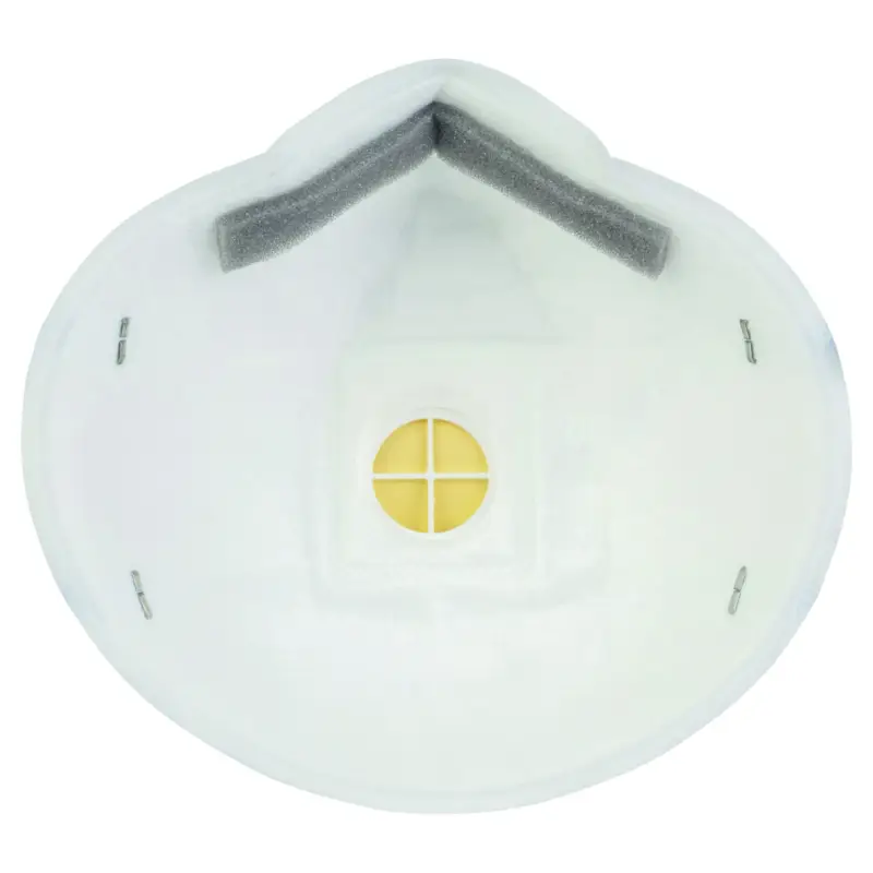 Stofmasker klasse P2 voor schadelijk stof. Lichtgewicht masker met neuskussentje en neusbeugel om masker aan te passen aan gezichtsvorm en lekkage tot een minimum te herleiden. Uitademventiel zorgt voor een lagere uitademweerstand en een lage C02- en vochtigheidsgraad in het masker. Voorzien van niet-regelbare, elastische hoofdbanden. NPF: 10.