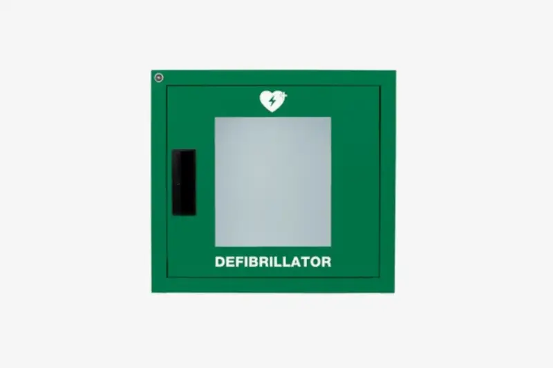 Metalen binnenkast voor AED, groen met alarm. Geschikt voor volgende AED’s: Primedic HeartSave Y halfautomatisch (1060424), Primedic HeartSave YA volautomatisch (1060425), Zoll AED Plus halfautomatisch (1060426), Zoll AED Plus volautomatisch (1060427), Zoll AED 3 halfautomatisch (1060428) en de Zoll AED 3 volautomatisch (1060429).