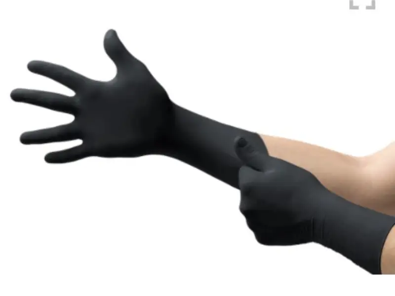 Zwarte poedervrije wegwerphandschoen gemaakt van zacht nitril met verlengde manchet voor extra bescherming van de pols en onderarm. Volledig voorzien van reliëf voor een betrouwbare en consistente grip. Siliconen en latexvrij en antistatisch. De zwarte kleur maakt het makkelijk om te zien of de handen in contact zijn geweest met potentieel gevaarlijke poeders. De handschoen is getest op fentalyl en maagzuur (braaksel) waarbij een gevaarlijke overdois uit de praktijk is gesimuleerd. Geschikt voor gebruik in de voedingsindustrie. Lengte: 300mm, palmdikte: 0,14mm, vingerdikte: 0,17mm. Maten: (S) 6,5/7 – (XXL) 10,5/11.