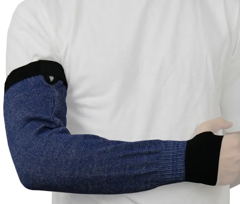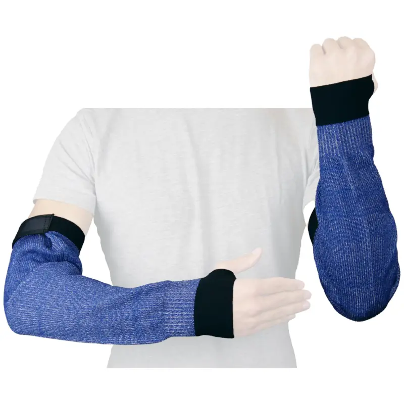 Snij- en hittebestendige armbeschermer 45 cm met duimopeningen velcro sluiting.Beschemrt gedurende 21 sec tegen contacthitte van 100°C (test rapport).Ergonomisch gebreid.