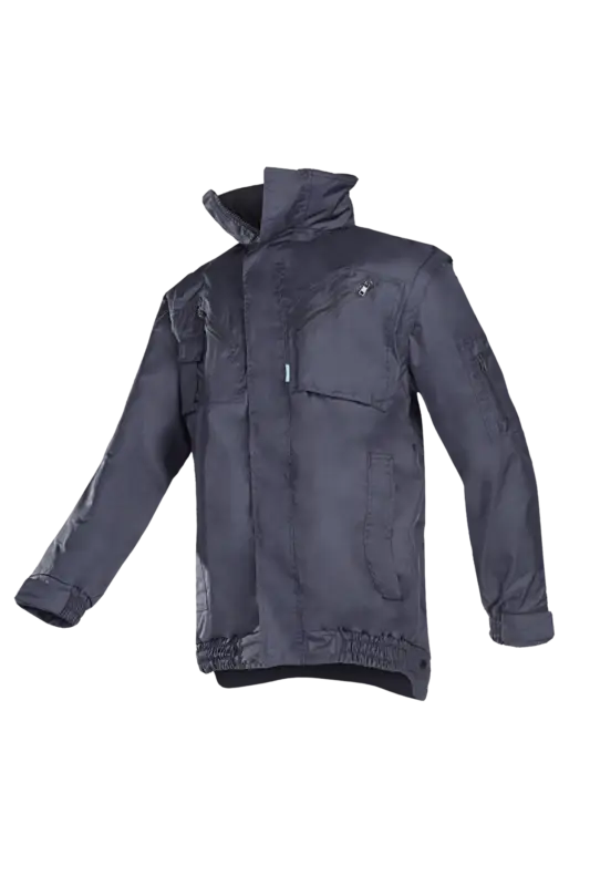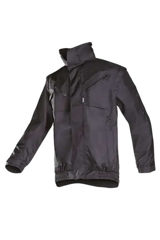 Winterblouson met uitritsbare mouwen, SIOPOR® Ultra: 100 % Polyester weefsel met 100% PU coating; +/- 195 g/m², Rechtopstaande kraag, Kap in kraag, Ritssluiting onder beleg met klittenbandsluiting, 1 Opgezette borstzak met ritssluiting, 2 Ingezette zakken, 1 Telefoonzak, 1 Mouwzak + pennenzak, 1 Micazak, Afneembare mouwen, Elastiek in mouwuiteinde en vernauwing d.m.v. klittenband, Elastiek in de zijkanten van de zoom, ruglengte 75 cm (L), Vaste voering : polyamide in lijf en gewatteerde voering in de mouwen, 1 Binnenzak, Ritsopening in de rugvoering voor het aanbrengen van logo’s, Uitneembare fleecevoering in lijf, 1 Opgezette zak.