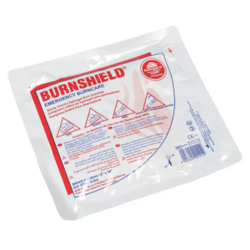 Kompres te gebruiken bij eerste, tweede of derdegraads brandwonden. Veilige, efficiënte en volwaardige koelmethode van brandwonden. De kompressen zijn gemaakt van een synthetisch foam, dat een maximum aan gel kan fixeren en daarom naadloos op alle contouren van het lichaam kan aansluiten. Steriele melkwitte tot heldere hydrogel, grotendeels bestaand uit water (96%) met conserveringsmiddelen. Tea Tree Olie werkt ontsmettend, stimulerend, bacteriedodend en voorkomt de vorming van littekenweefsel. Koelt, verlicht de pijn, minimaliseert de ontwikkeling van de brandwond. Afmetingen: 20 x 45cm.