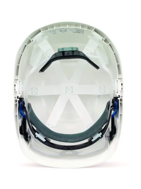 Superlichte en perfect uitgebalanceerde veiligheidshelm in sterk ABS, niet geventileerd. Met 6-punts binnenwerk in textiel (52-64cm) en sterk absorberende hydro-flock zweetband. Zeer groot oppervlak voor personalisatie. Voorzien van een regengoot met een uniek afwateringssysteem. Met Europees 30mm slot voor opbouw van gehoor en gelaatsbescherming. Met intrekbare bril, impact B (!), geschikt voor het dragen met correctiebril. Deze bril heeft een zachte aanpasbare neusbrug en kan gemakkelijk vervangen worden. Toebehoren: badgehouder, lamphouder, reflecterende strips, vervangbril. Kleuren: wit, geel, blauw, rood, groen, oranje, grijs, zwart. Geschikt voor algemene industriële toepassingen. In overeenstemming met: EN 397 MM, -30°C, LD/ EN 50365 1000V.