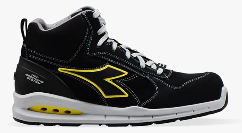 Hoge schoen Run in waterafstotend suède leder. Voorzien van een aluminium 200J neus en een synthetische antiperforatiezool. Bevat GEOX transpiratie systeem (Net Breathing System). Binnenvoering in ademend nylon en ademende binnenzool. Loopzool in PU/PU. Maten: 35-48.
