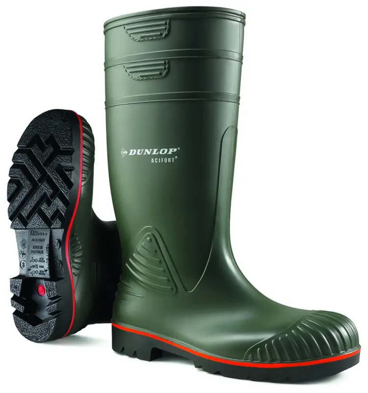 Groene kunststof laars. Een uitstekende laars voor legio toepassingen in de industrie. De schacht is goed bestand tegen brandstoffen, zuren en logen. De zool is ook resistent tegen oliën en vetten. Voorzien van stalen neus en stalen tussenzool. Antistatisch. Maten: 40-48. Gewicht: 1,32kg.