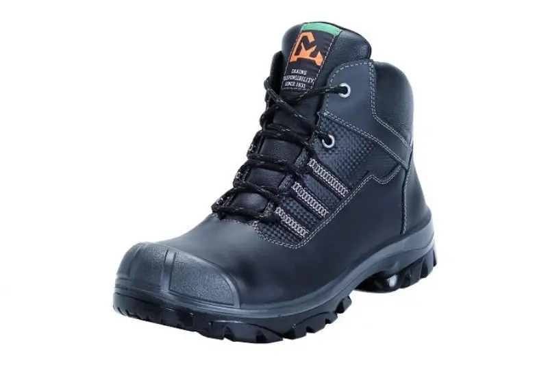 Hoge schoen in zwart waterbestendig rundsnerfleder met kunststof neus en synthetische antiperforatie zool. PU-overneus. DryShield membraan. Zool in PU/PU. Maten: D (36-48), XD (39-48).