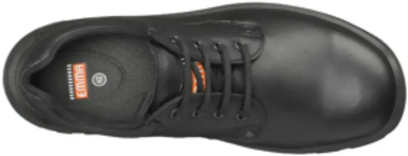 Lage zwarte veiligheidsschoen in glad volnerf rundsleder met stalen 200J neus. Voorzien van een Smartec Air Sanitized voering: geur- en schimmelwerend. Volledige inlegzool in anti-bacteriologisch, vochtabsorberend, ademend, uitwasbaar, anti-statisch materiaal. Gep olsterde watertong. Soepele super lichtgewicht 2-densiteiten PU/PU zool met hakprofiel, hoge slijtvastheid, anti-statisch, anti-slip, olie-, benzine- en zuurbestendig, hoog schokdempend vermogen. Maten: D (35-49), XD (37-49).