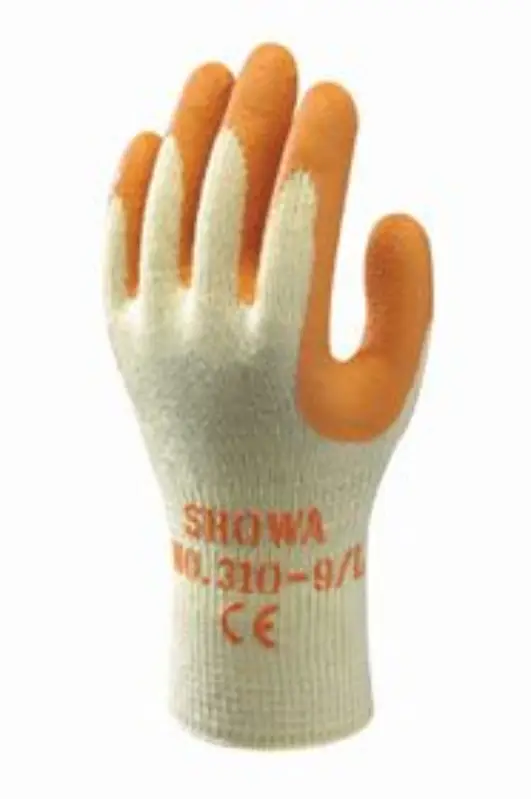 Naadloze liner van katoen/polyester, opgeruwde groene latex coating ophandpalm en vingertoppen.