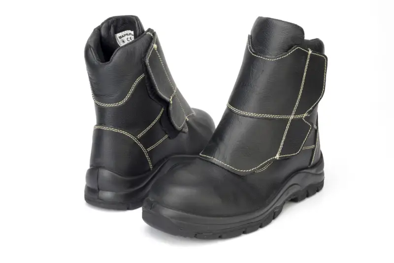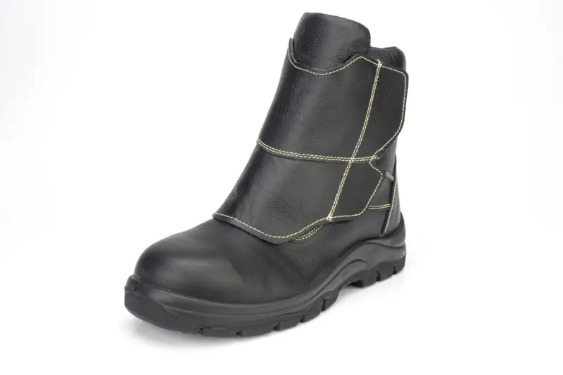 Extra hoge lasschoen in rundnerfleder, met een synthetische antiperforatiezool en een synthetische 200J neus. Voorzien van een ademende, abrasiebestendige voering in textiel en brandvrije stikels in para- aramide. Met extra brede velcrosluiting voor een optimale fitting. Zool in PU/Nitril, SRC antislip, bestand tegen oliën en zuren. Uitneembare inlegzool in polyurethaan met textiel laag. 100% metaalvrij. Maten: 38-48.