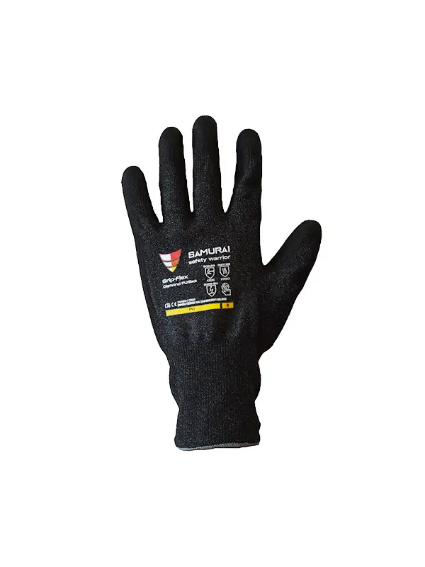 Snijbestendige donkere handschoen gemaakt met de nieuwste Dyneema® Diamond technologie en een zwarte, schuurbestendige PU coating. G egarandeerde medium snijbestendigheid (niveau C) gecombineerd met een korte bescherming tegen contacthitte tot 100*C in een lichtgewicht handschoen. Een “ademende” handschoen, vingergevoelig, touchscreen compatibel, elektrostatisch eigenschappen en een goede grip maken dit tot een comfortabele, veelzijdige oplossing. Er wordt geen gebruik gemaakt van glasvezel. Conform EN388:2016: 4.X.4.3.C, EN407:2020:X.1.X.X.X, EN16350
