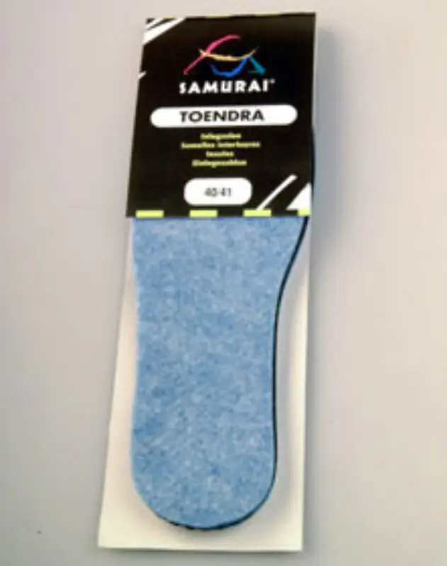 Toendra inlegzooltjes zijn vervaardigd uit lichtblauwe vilt op een zwart schuimrubber rooster. Ze hebben een hoog absorptievermogen en zijn koude- en warmte-isolerend. Maten: 36-47.