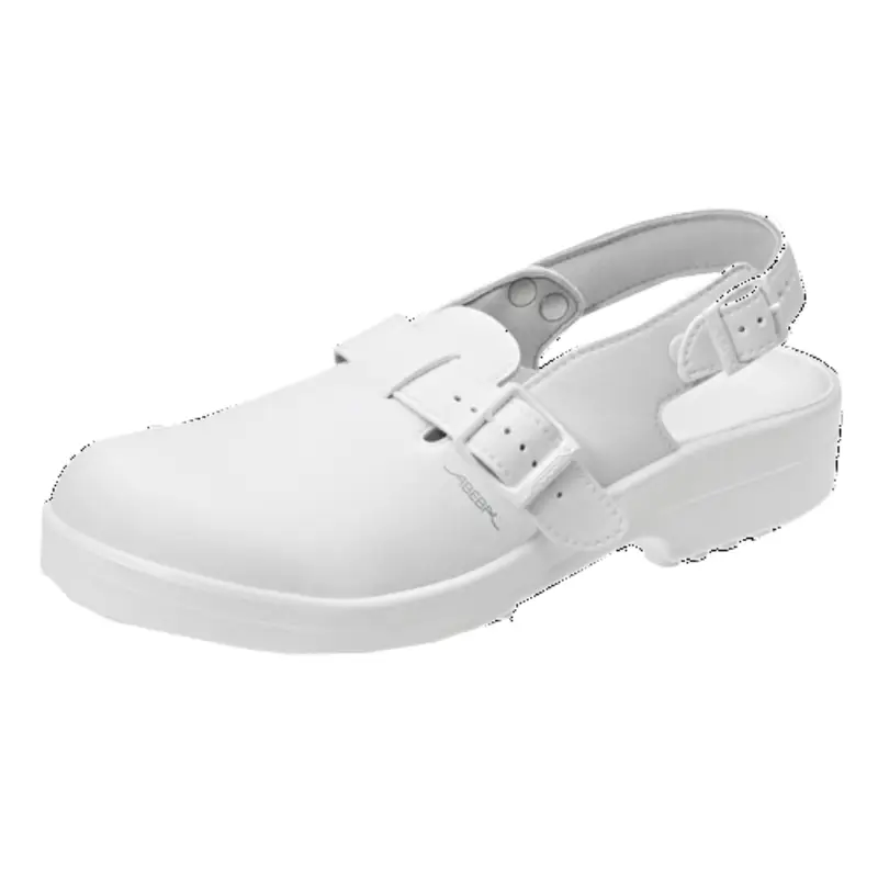 Witte, klassieke klomp uit wit microvezel met stalen neus. Voering en hiel in microvezel. Zool in PU met goede antislipweerstand. Aanpasbare instap mogelijk door de ingebouwde riem. Wasbare klomp. Uitermate geschikt voor HACCP. Maten: 36 – 46.