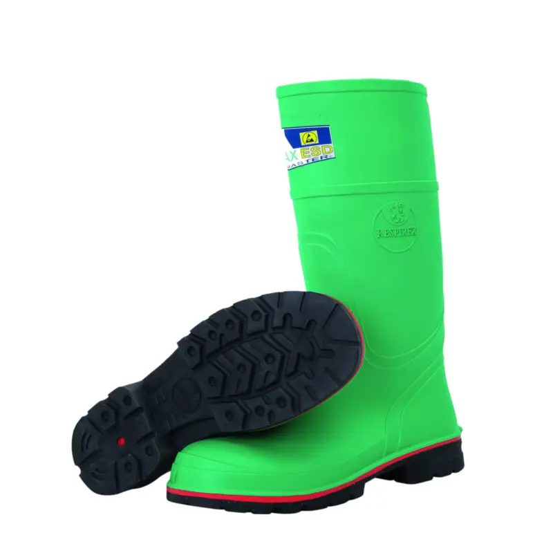Laars Hazmax S5 in uiterst chemisch bestendig materiaal met stalen neus en stalen antiperforatiezool. Uitneembare, wasbare inlegzool. Zool in gevulkaniseerd rubber, oliebestendig, antislip en hittebestendig tot 300°C (contacthitte). Met schokabsorberend tunnelsysteem in de hiel. Kleur: groen. Beschikbaar: 35-47.