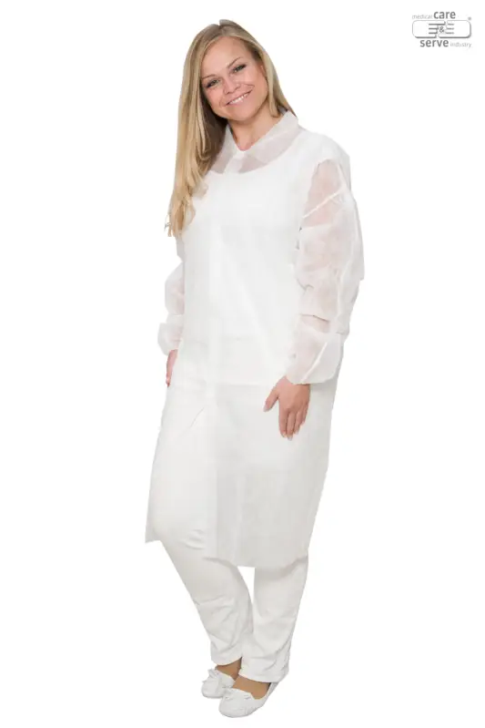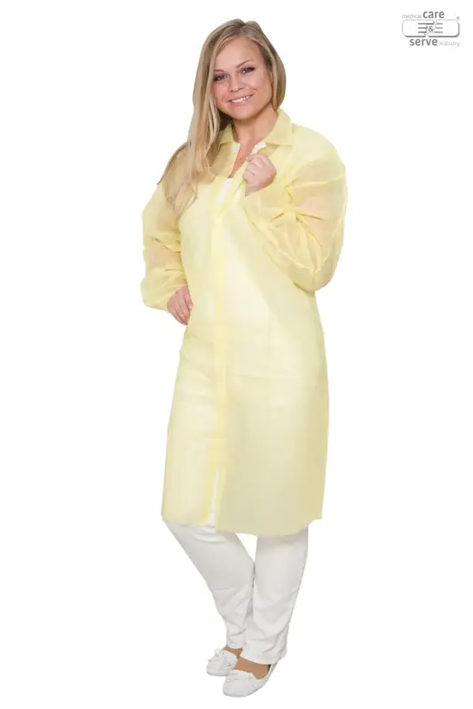 Labojas met velcrosluiting in polypropyleen zonder zakken, 30g/m². Beschikbare maten: L-XXL. Beschikbaar in verschillende kleuren: donkerblauw, lichtblauw, wit, groen, geel en rood. Geen PBM.