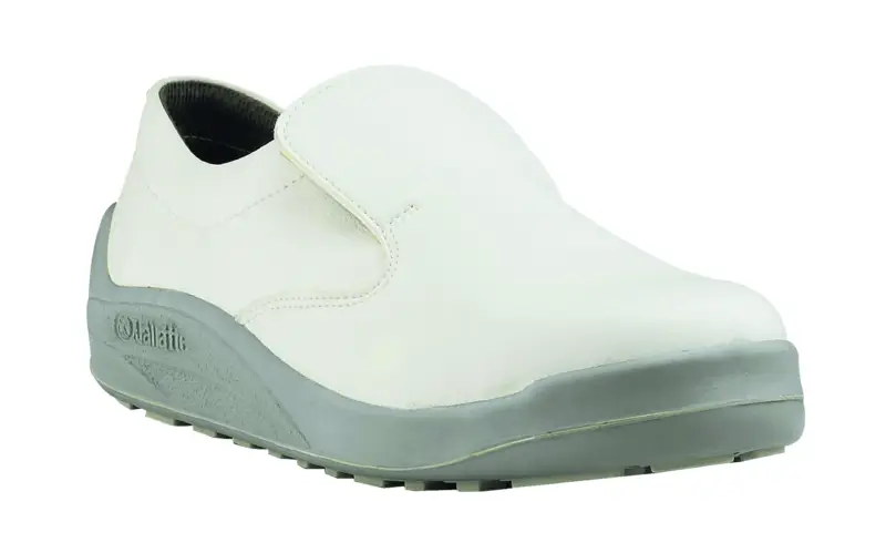 Lage hygiëneschoen in Aseptane, met minimum aan naden. Met beschermneus, comfortabele Triftane loopzool en Texon Soft binnenzool voor optimale absorptie van transpiratievocht. Elastieken sluiting onder beschermtong. Voering in aangename Cambrelle. Perfect wasbaar tot 30°C.