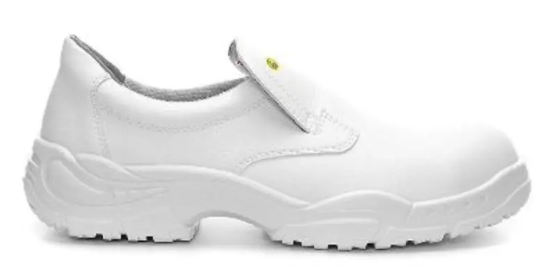 Lage schoen in wit gehydrofobeerd microvezel, met een stalen 200J neus. Voorzien van een ademende, abrasiebestendige voering in textiel. Zool in PU, SRC antislip, bestand tegen oliën en zuren. Uitneembare inlegzool in polyurethaan met textiel laag. Maten: 39-48.