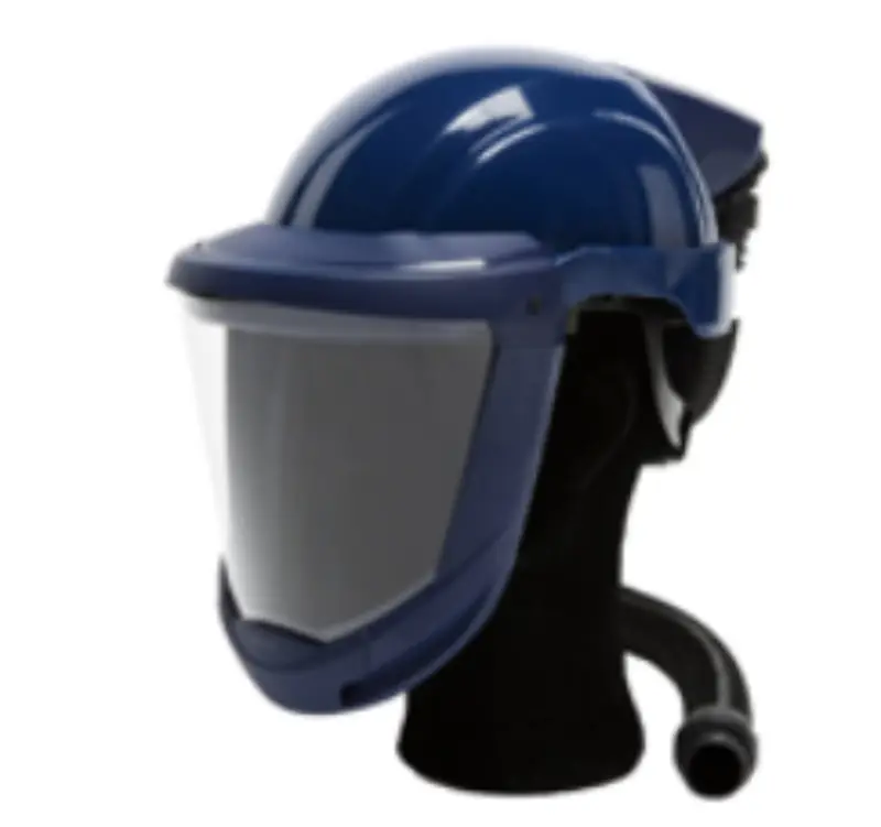 Luchtkap in de vorm van een weiligheidshelm met opklapbaar PC vizier, voor aansluiting op Sundström motorunits SR500 /SR700. Luchtkanaal leidt naar het vizier om beslaan van het vizier te vermijden. Vizier makkelijk op te klappen en hoofharnas is aanpasbaar luchtslang kan vervangen worden. Voor werken met risico op mechanische impact. Gewicht: 700 gr. NPF: 500.