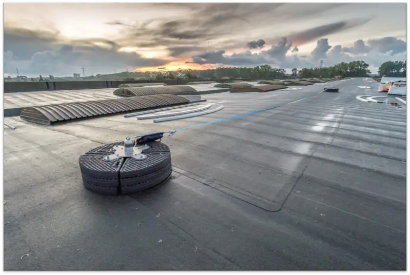 Vrijstaand en verplaatsbaar contragewicht-anker dat gemakkelijk bovenop een plat dak kan worden geplaatst om voor maximum twee medewerkers een bevestigingspunt te vormen. Omvat 12 gewichten van 24 kg, een basisplaat, een paal en een D-Ring. Conform EN795E.