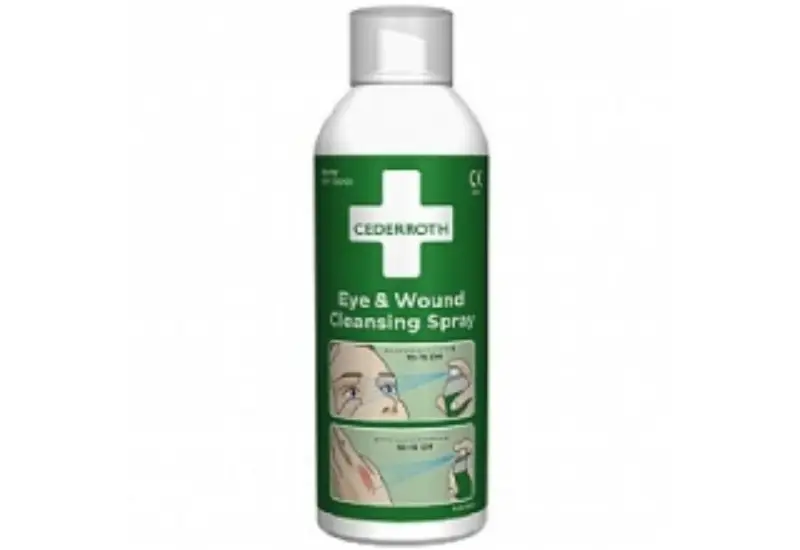 Spray voor de reiniging en het wegspoelen van stof en vuil uit ogen en wonden. De spray geeft een milde strooom vocht en heeft een totale spoeltijd van 5 minuten. De spray kan verscheidene keren gebruikt worden en is tot de laatste druppel steriel. Bevat 150ml steriele fysiologische zoutoplossing 0,9%NaCl. Milieuvriendelijk drijfgas. Past in het eerstehulpstation.