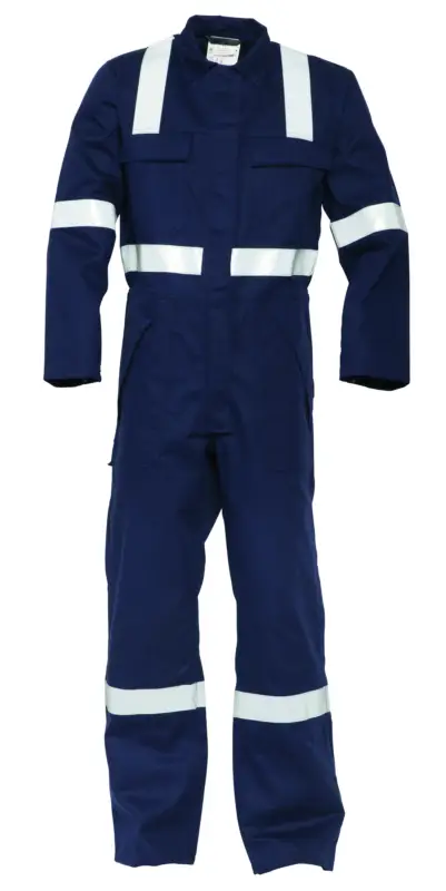 Overall vlamvertragend en antistatisch, 80% katoen 19% polyester 1% antistatische draad, satijnbinding, 280gr./m², 2 borstzakken met klep, 2 opgezette zijzakken, 1 meterzak met klep, 1 achterzak met klep, elastiek in de tailleband rugzijde, verdekte sluiting, retro-reflecterende banden. Beschikbaar in: navy, oranje, rood, charcoal en zwart.