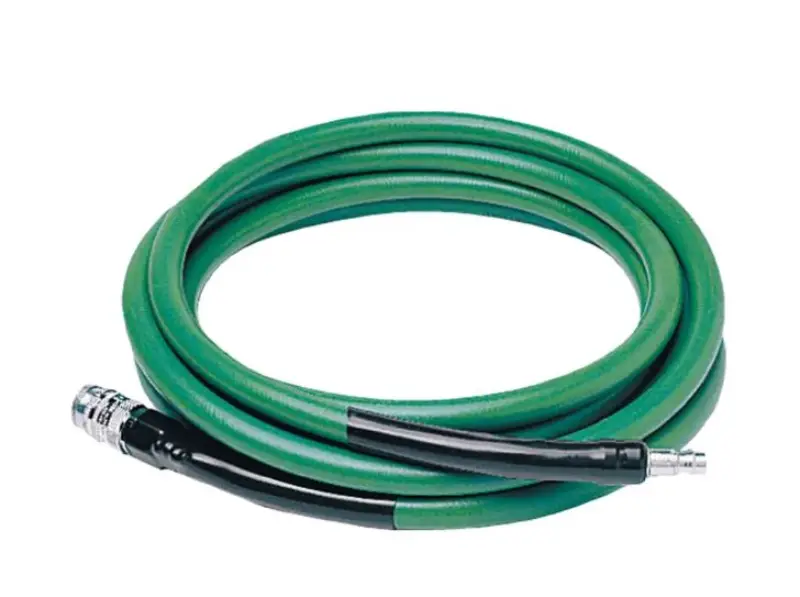 Olie en chemsch bestendige persluchtslang met diameter 10/16mm van polyester versterkt met PVC, voorzien van veiligheidskoppelingen CEJN 342. Om te gebruiken met de SR99-1 filterunit.