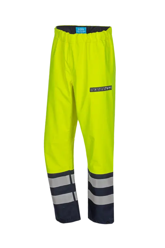 Multirisk regenbroek met een hoog beschermingsniveau maar toch licht in gewicht. De Hovi signalisatiebroek is een waterdichte regenbroek met ARC-bescherming in een lichte en verbeterde Siopor® Excell-stof. De 3-laags stof beschermt uitstekend tegen slecht weer, hitte, vlammen, lasvonken en de risico’s van een elektrische overslag. Deze hogezichtbaarheidsbroek is zacht en soepel, waardoor hij een genot is om te dragen in potentieel gevaarlijke werkomgevingen. Kwaliteit: 3-laags stof: Dobby ripstop polyester stof (& AST) + ademend FR PU + inherent FR breisel; ± 280 g / m²; 85% FR-viscose + 15% para-aramide; ± 125 g / m². Beschikbare maten: S-3XL. Beschikbare kleuren: Fluo oranje / marine en fluo geel / marine. In lijn met: IEC 61482-2: 2018 klasse 1 – ATPV 9.1 cal / cm², EN ISO 11612: 2015 / A1 A2 B1 C1 E1 F1, EN ISO 11611: 2015 / Klasse 1 – A1 A2, EN 1149-5: 2018 , EN 13034: 2005 + A1: 2009 Type PB [6], EN ISO 20471: 2013 + A1 2016 / Klasse 1, EN 343: 2019 / Klasse 4: 4 en EN ISO 13688: 2013.