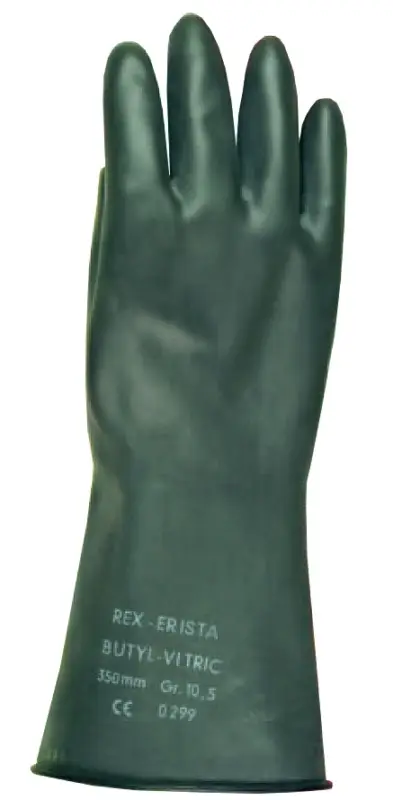 Soepele, comfortabele en chemiebestendige handschoenen in butyl, bedekt met een laag viton. Maten: 7 / 8 / 9 / 10 / 11 / lengte: 35 cm / dikte 0 ,5 mm.