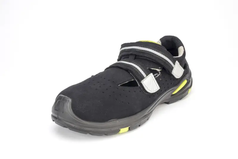 Sandaal in microfiber, met een synthetische antiperforatiezool en een synthetische 200J neus. Voorzien van een ademende, abrasiebestendige voering in textiel. Met velcrosluiting en een geprononceerde kruipneus. Zool in PU/PU, SRC antislip met zelfreinigende kanalen, bestand tegen oliën en zuren. De extra slijtvaste voor- en achterkant zorgt voor veilig stappen en afrollen van de voet. De zool bevat brede en diepe afwateringskanalen om vloeistoffen af te drijven en is ook voorzien van een ladder grip, om de veiligheid tijdens gebruik van ladders te verhogen. Uitneembare ergonomische inlegzool in polyurethaan met textiel laag. Lakneutraal, geen ftalaten. ESD gekeurd. Maten: 36-49.