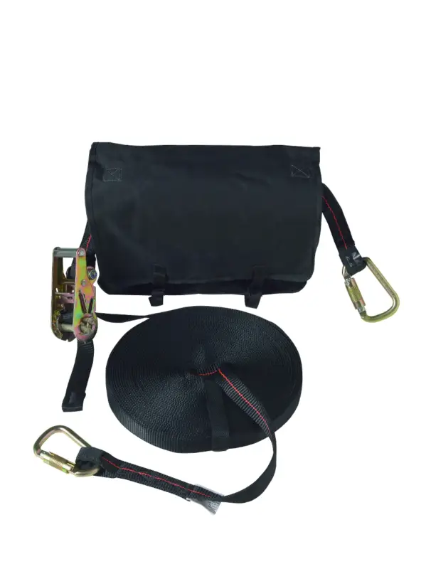 Tijdelijk horizontale levenslijn in polyester webbing met een maximale lengte van 20 meter. Levenslijn kan m.b.v. lijnspanner tussen 2 puntenworden opgespannen. Voorzien van 2 karabijnhaken en ankerpunten in band1m om uiteinden te bevestigen aan allerlei constructies. Geleverd in handige opbergtas. Voor 2 personen. Gewicht: 3,2kg.