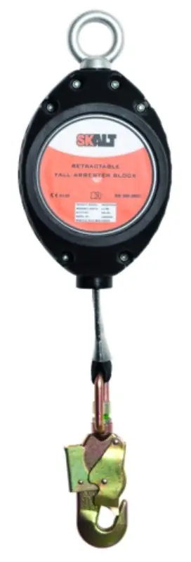 Valstopapparaat 6 meter webbing met geïntegreerde schokdemper. Behuizing uit kunststof. Voor verticaal en horizontaal gebruik en geschikt voor scherpe randen..