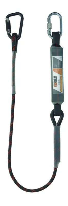 Vanglijn lengte 1,5 meter, diameter 10,5 mm. Kernmantellijn, mettweestandaard karabijnhaken.