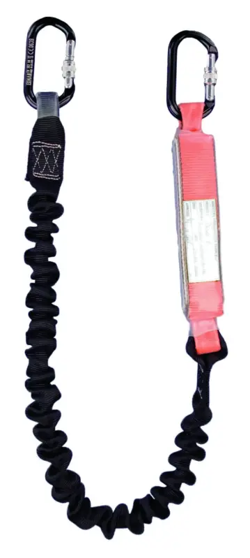 Vanglijn 2 meter uit elastische band met geïntegreerde valdemper. Voorzien van 2 standaard musketonhaken. Max. gebruikersgewicht: 140kg.