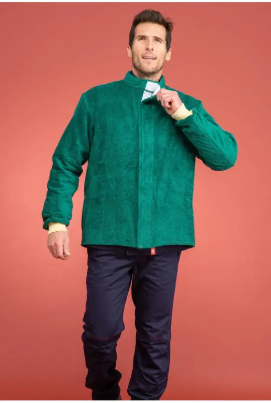 De 100% katoenen vest voor glasbewerkers biedt maximaal comfort en heeft een AFLAMMIT® vlamvertragende behandeling. Samenstelling: 100% vlamvertragend katoen 490g/m². Beschikbare maten: M-2XL. Beschikbare kleuren: Groen. Voldoet aan: EN ISO 11612 A / B2 C2 D2 E2 F2.