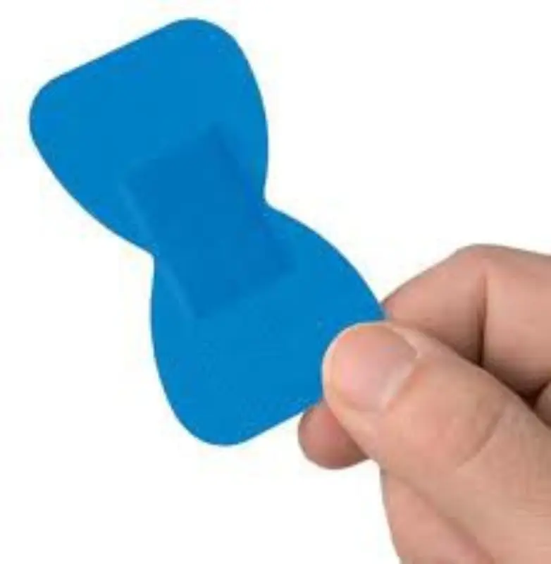 Wondpleister met een detecteerbare strook onder het wondkussen. Te gebruiken voor voedingsindustrie of ieder die in aanraking komt met voeding. De pleisters hebben een blauwe kleur en daardoor zeer snel op te merken.